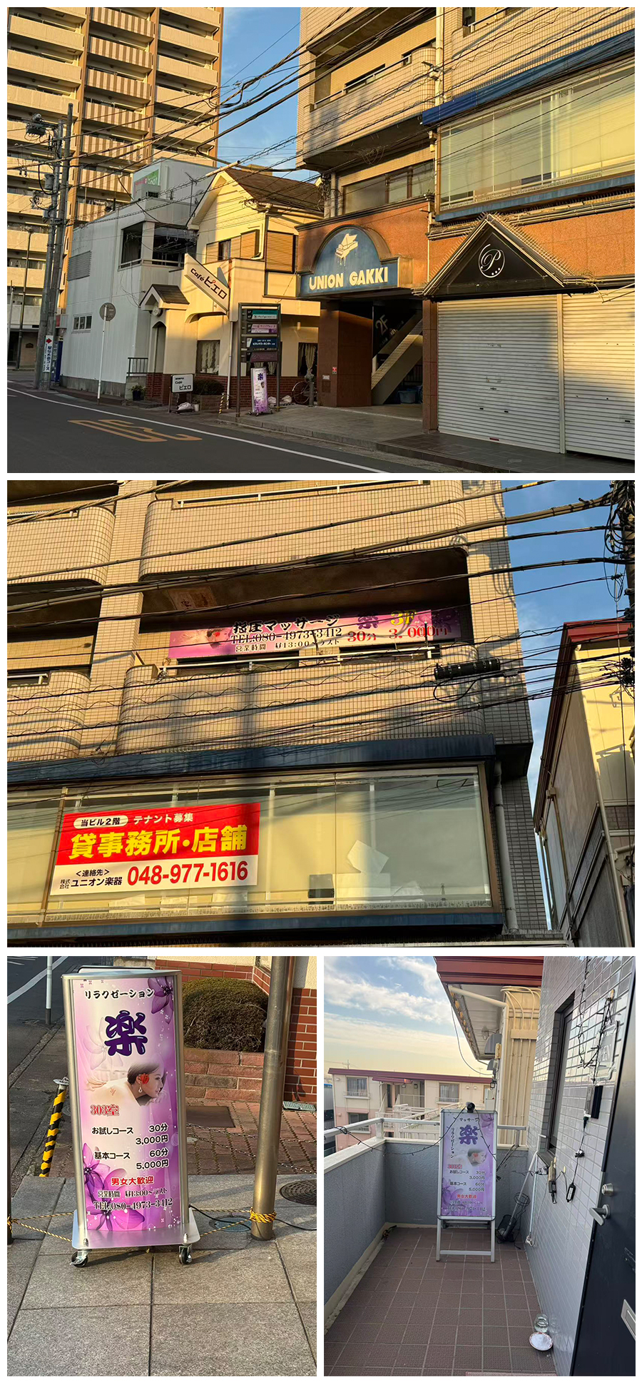 せんげん台駅東口徒歩2分 まずはご予約のお電話を下さい。 初めての方は、ご予約の際に詳しくご案内致します。 受付の際に、「初めて」とおっしゃってください。